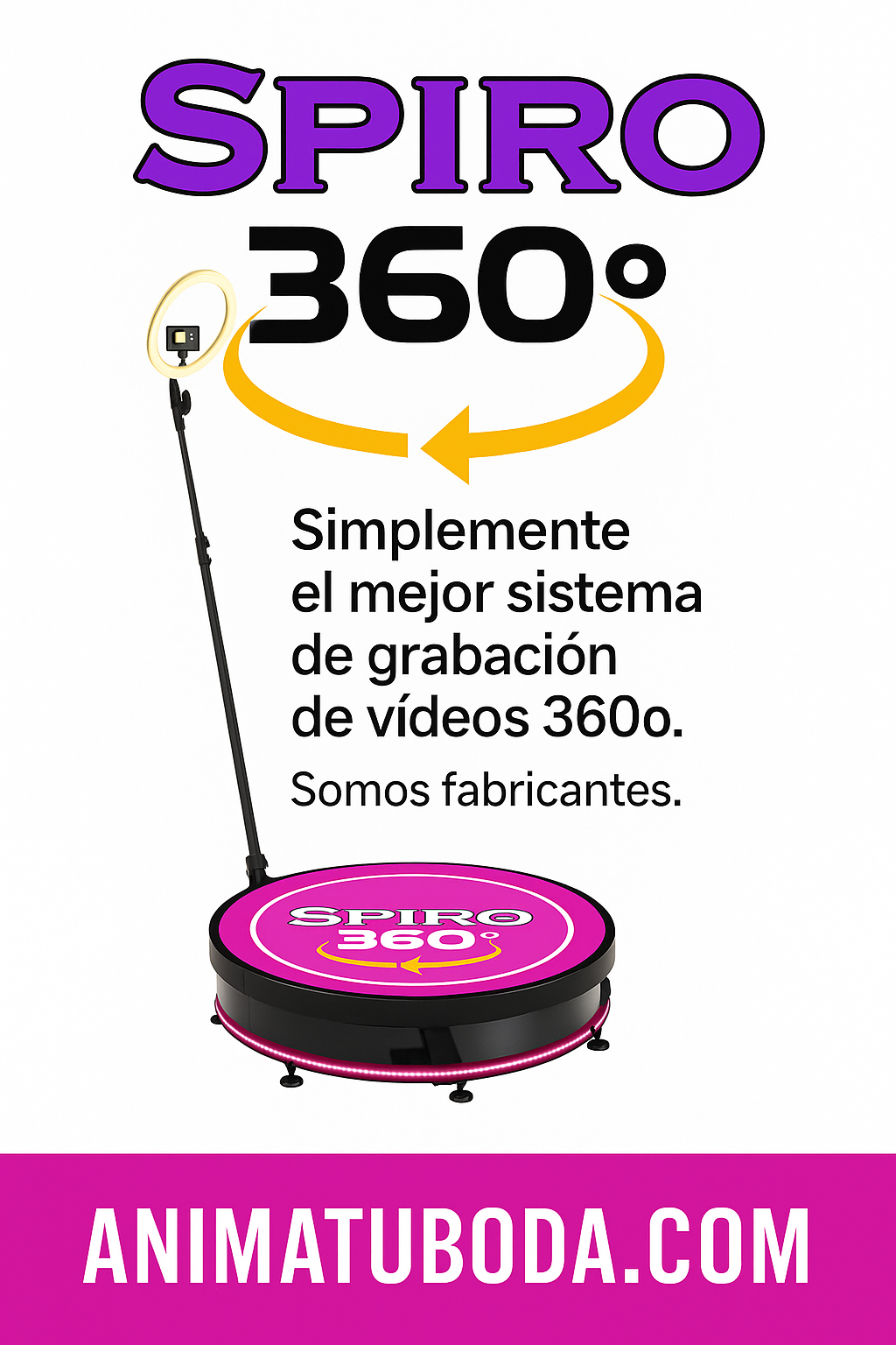 Un recuerdo en vídeo espectacular y diferente. La plataforma giratoria 360° crea vídeos únicos que tus invitados podrán ver y compartir al instante, con un montaje VIP que no pasa desapercibido.