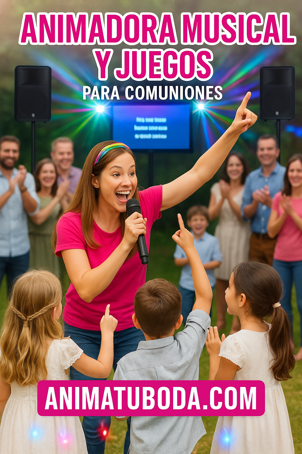 La animadora musical es la opción ideal para que los peques disfruten a lo grande. Con juegos dinámicos, pintacaras, bailes de TikTok y karaoke, consigue que todos participen y vivan una comunion llena de diversión.